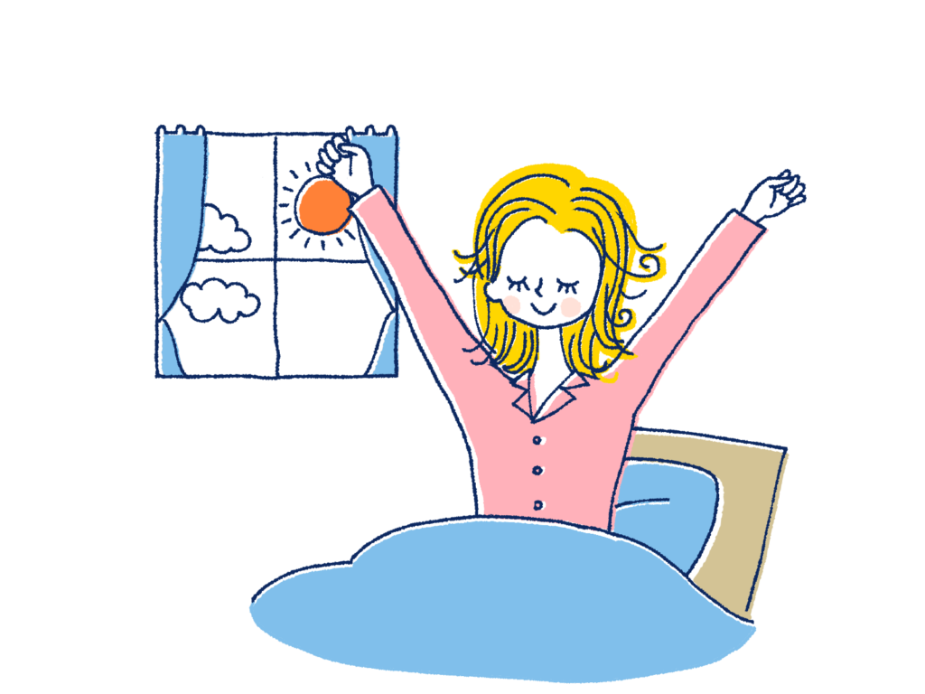 朝の光を浴び、温かい朝ごはんをとる。